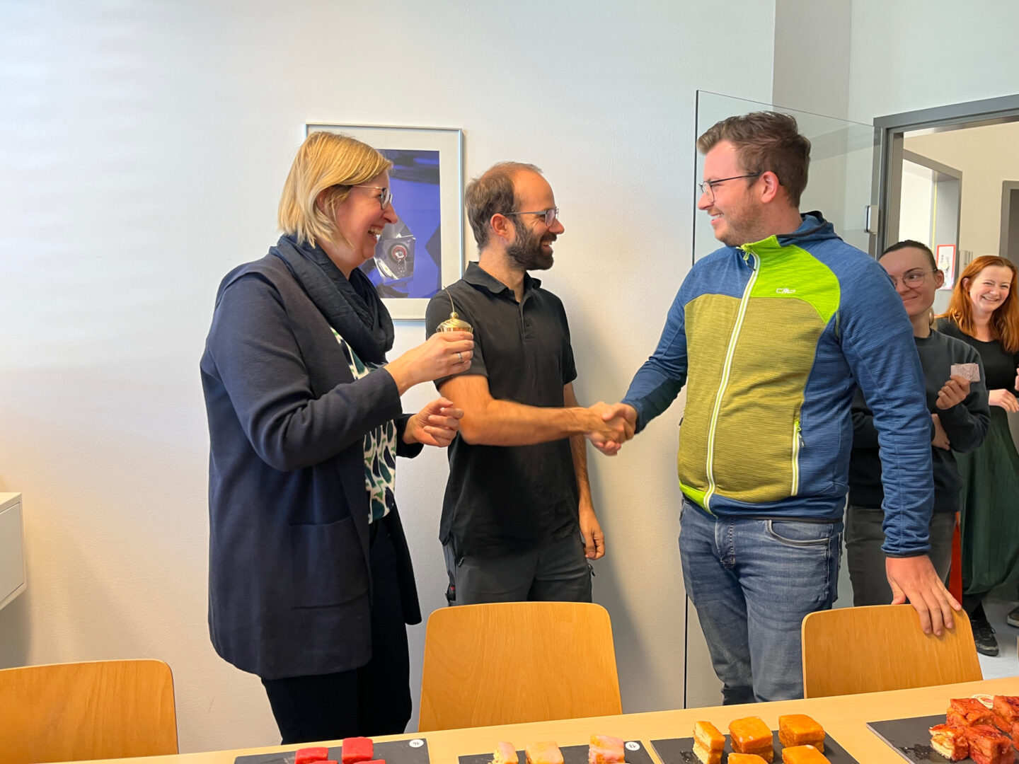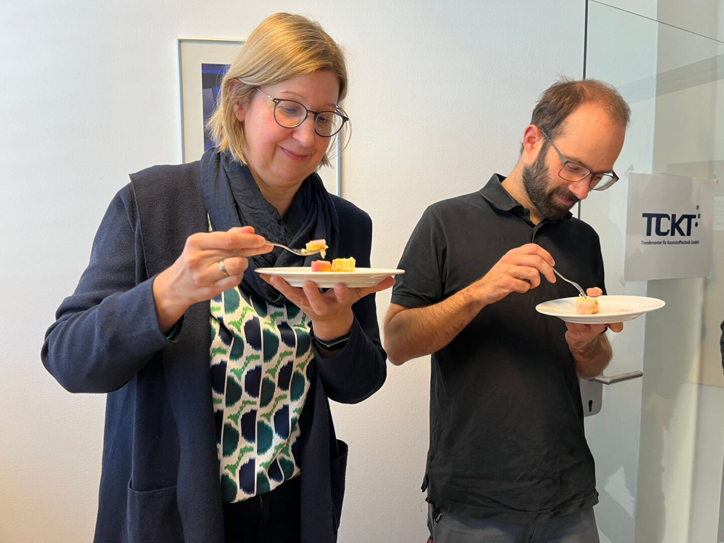 The kitchen was buzzing: there was stirring, glazing, swearing, and laughing. Some glazes just didn't want to cooperate with their bakers, while other sponge cakes were “a little tricky.” But in the end, all eleven participants proudly presented their five little masterpieces.